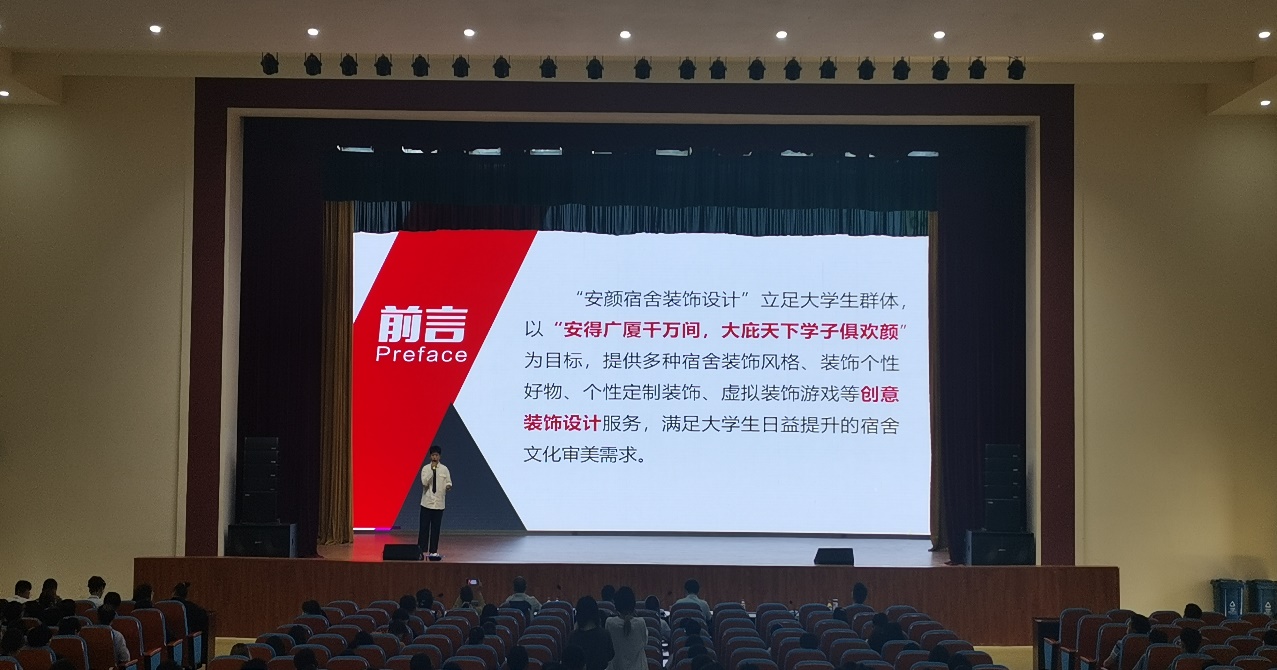 在激烈的比拼中,太阳成集团tyc33455cc“安颜——引导校园宿舍创意装饰app”项目进入决赛,在比赛过程中,他们详细的向大家介绍了项目的精彩内容,其中包括项目的选取、市场的调研、创新点分析、财务状况、团队人员分工和后期展望等方面。