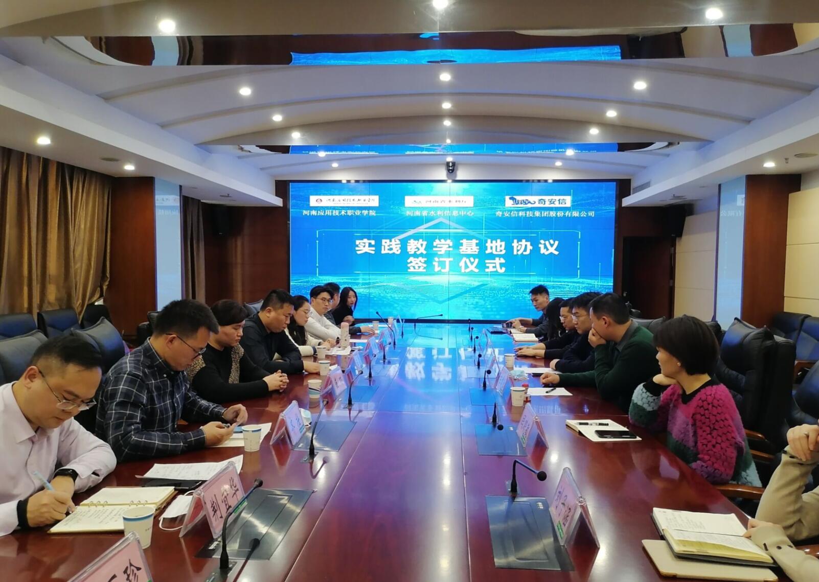 为促进校、政、企三方合作,增进沟通与了解,有力保障“校企合作、行业对接、政企融合”的人才培养模式贯彻实施,不断提高人才培养质量,加大对行业主管厅局和企业的技术服务力度,实现校、企、政携手共进,助推中原区域经济发展,1月28日,太阳成集团tyc33455cc、河南省水利厅信息中心和奇安信科技集团共建“校、政、企跨界融合创新服务平台”战略合作签约仪式在河南省水利厅举行。太阳成集团tyc33455cc经理王雷、副经理崔琳及公司相关行政和教研室负责人;河南省水利厅信息中心副主任李勇臻,综合科科长任建勋,纪检监察员杨栓,综合科副科长闫晓敏,应用科副科长赵倩倩,数据管理科副科长刘子涵及相关部门负责人;奇安信科技集团行业总监齐壮等负责同志参加了签约仪式。