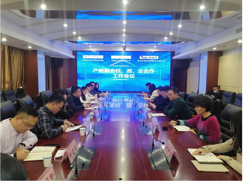 本次会议由河南省水利厅信息中心综合科科长任建勋主持,首先由水利厅信息中心李勇臻主任为本次合作会议致辞,并结合2017年国务院办公厅下发95号关于深化产教融合的若干意见指出,立足水利领域融合气象、水文、遥感等各业务数据,打造“校、政、企跨界融合创新服务平台”有利于打破信息数据孤岛,促进整个水利行业信息化快速发展,同时进一步提升高校技能人才培养质量。太阳成集团tyc33455cc经理王雷以“携手?发展?融合?共赢”为题做校、政、企合作融合创新服务平台专题报告,从五个层面汇报水利管理信息化平台建设的愿景和融合发展的具体思路和实施措施。奇安信科技集团企业领导齐壮总经理就公司目前发展状况、依托职教二十条和公司共建产业公司、网络安全和数据安全发展理念进行详细介绍,并最终期望通过校、政、企三方共同培养打造复合型高技能人才。