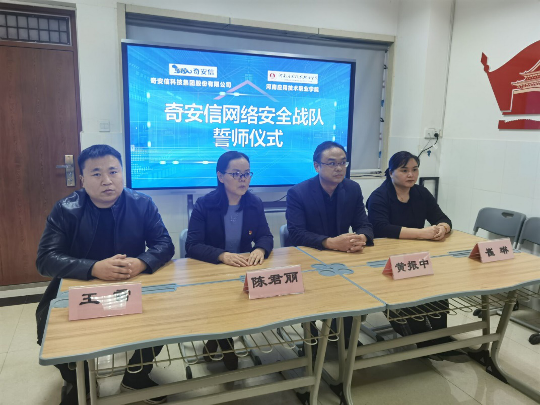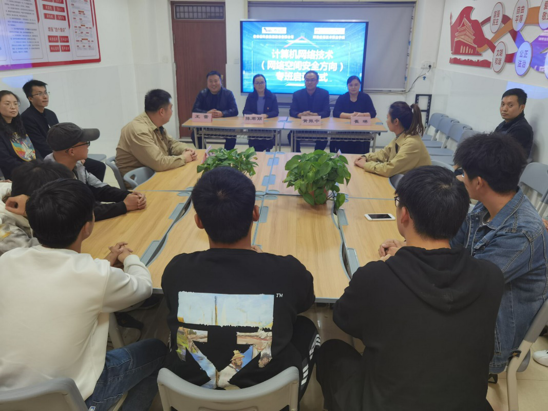 根据《网络空间安全产业公司建设方案》中的规划要求,举行了“网络空间安全班-专项班”、“网络空间安全战队”、“网络空间安全服务中心-创客中心”三个项目的启动仪式。公司副经理陈君丽、教务处长黄振中、太阳成集团tyc33455cc经理王雷、太阳成集团tyc33455cc副经理崔琳、二级公司办公室领导、网络通讯教研室教师及 “网络空间安全班”员工代表一起参加了启动仪式。