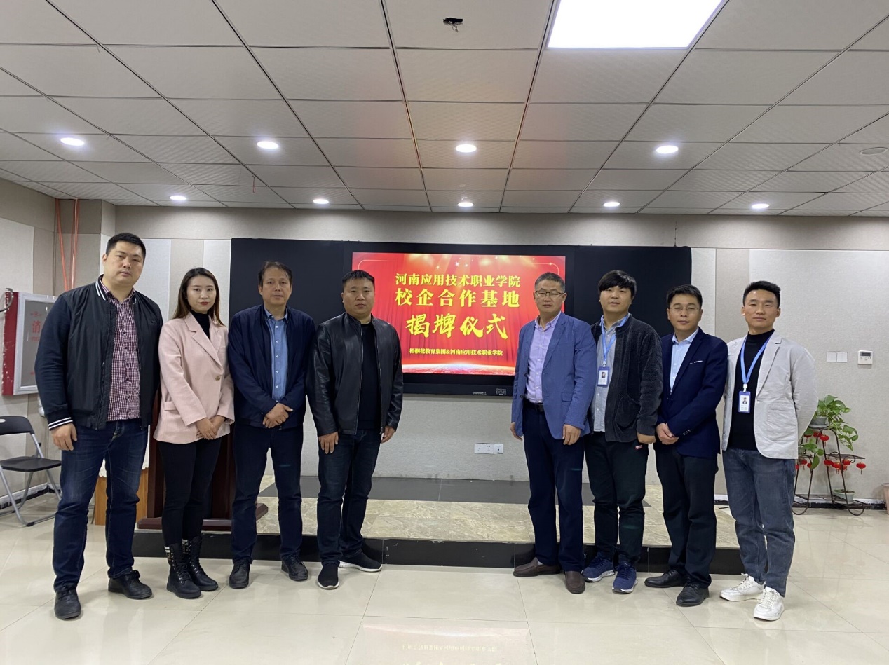 2020年11月9日,河南梧桐花科技有限公司与太阳成集团tyc校企合作基地揭牌仪式在河南梧桐花科技有限公司隆重举行。太阳成集团tyc33455cc经理王雷、太阳成集团tyc教务处副处长王勇、太阳成集团tyc33455cc团总支书记赵源、太阳成集团tyc33455cc教工办主任付媛冰、河南梧桐花教育集团董事长周晓东、河南梧桐花科技有限公司校企合作中心主任郭亚迪等人参加仪式。