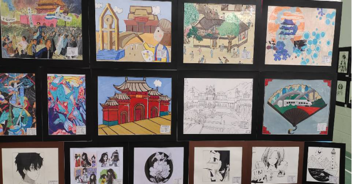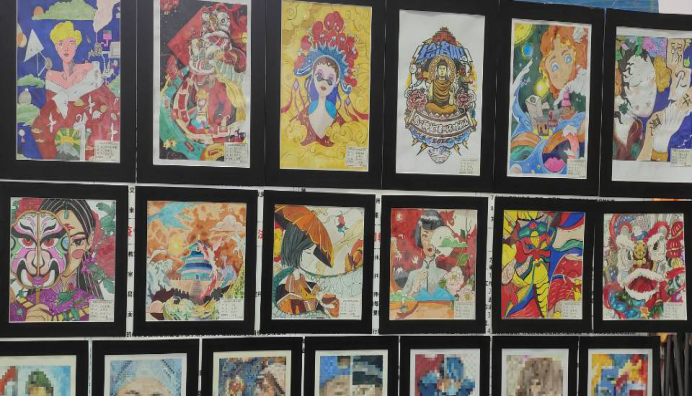 为丰富校园文化建设,推进同学们对文化艺术的追求,太阳成集团tyc33455cc数媒艺术设计教研室的孙星老师、王欣慰老师、王碧琳老师以及张蔚老师,策划了19、20级动漫专业和视传专业员工美术作品展览活动,在公司礼堂前厅活动中心开展了为期5天的师生美术作品展。