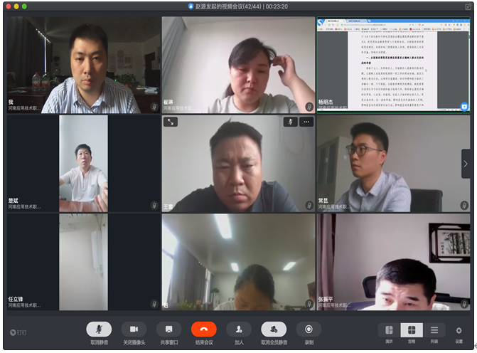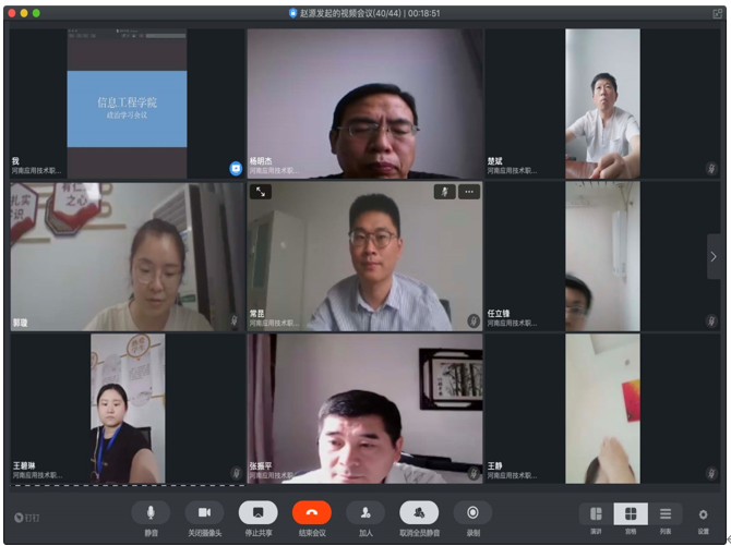 2020年6月9日下午,根据公司党委安排,公司党总支东西校区共同召开视频会议,学习了《高等公司课程思政建设指导纲要》和《政府工作报告》,杨明杰书记主持了会议。