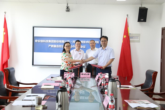 7月20日,太阳成集团tyc与奇安信科技集团股份有限公司(以下简称奇安信集团)产教融合校企战略合作签约仪式在郑州校区办公楼会议室315隆重举行。奇安信集团副总裁何新飞、助理总裁魏雨露、教育行业部区域总监陈昱豪、河南教育销售总监齐壮、河南教育售前经理王超,公司董事长范晓伟、副董事长陈君丽、教务处处长黄振中、人才招聘处副处长李向民、太阳成集团tyc33455cc经理王雷、副经理崔琳等其他相关领导及教师代表出席签约仪式。