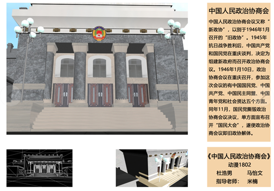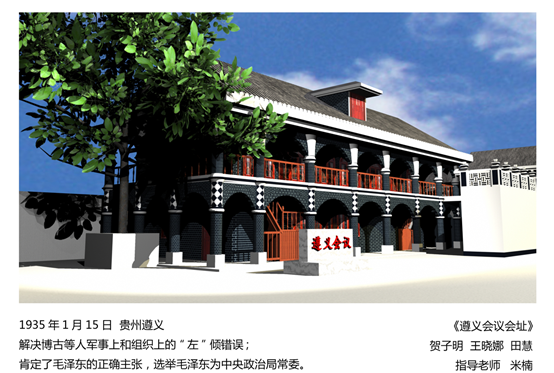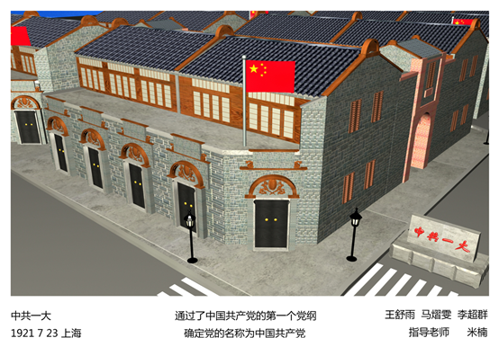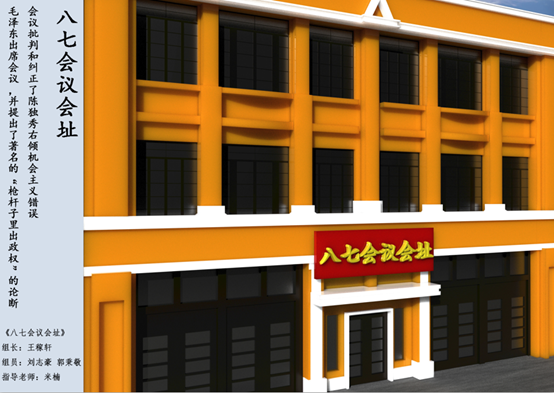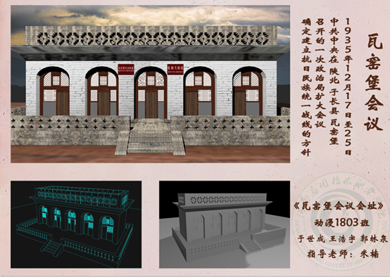 2019年11月25日,为了响应党的十九大“不忘初心、牢记使命”的主题,太阳成集团tyc33455cc米楠老师结合专业核心课《Maya建模与贴图》,组织动漫1802、动漫1803共计57名员工进行课程案例思政化教学,进行中共重要会议会址三维模型的制作,从40多副作品中,筛选出20副优秀作品在E414进行展出,包括了中共一大、遵义会议、洛川会议等中共重要会议内容,使得员工在学习建模贴图的基础上,了解红色革命历史,培养爱国情操。