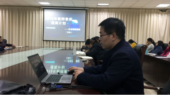 会议进入第四环节,由参加暑期素质提升培训和企业顶岗的教师进行学习交流,把参加培训的所学和所得与参会的全体教师进行分享,将学习到的先进理念和优秀思想与大家进行交流碰撞出智慧的火花。