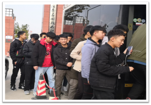 ▲同学们井然有序的排队上车