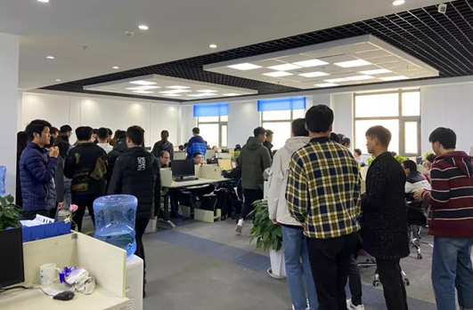 ▲等待参观的员工