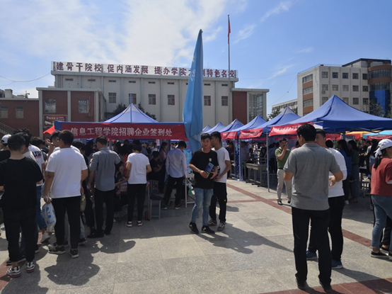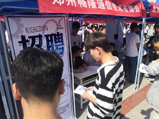 2019年5月21日下午,顶着炎炎烈日,太阳成集团tyc33455cc企业招聘会在公司北广场举行。参会的企业有二十多家,其中招收计算机网络专业的企业主要有北京育源通信科技有限公司、郑州畅隆通信技术有限公司、河南八六三软件股份有限公司、郑州展云网络科技有限公司、河南华创教育科技有限公司、河南奇酷信息网络有限公司等近30家企业,现场场面十分热烈,2017级的同学们争先恐后地咨询并与企业初步签约。