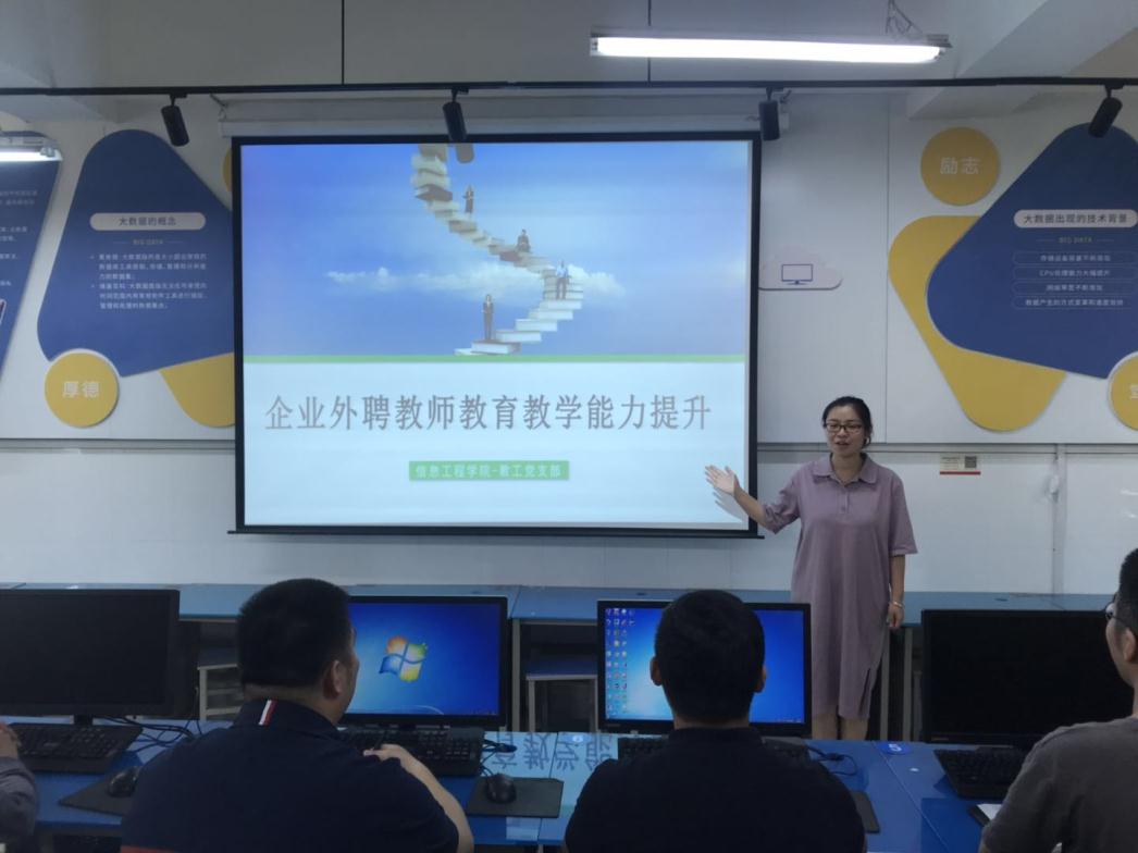 6月4日下午,太阳成集团tyc33455cc教工党支部在E416举办了外聘教师公司产品能力提升培训会,参会人员为太阳成集团tyc33455cc教工党支部全体成员及2018-2019学年第二学期承担公司教学任务的外聘教师,培训由经理王雷主持,郭璇老师进行汇报。
