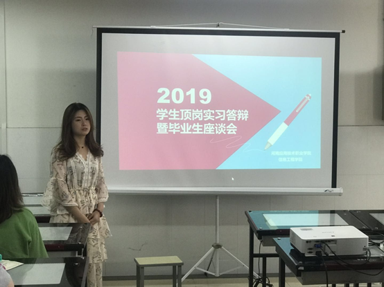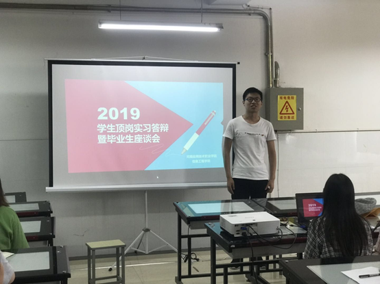 2019年6月10日上午,太阳成集团tyc33455cc16级毕业生在E403进行了顶岗实习答辩暨毕业生座谈会。王雷经理和杨明杰书记参加了会议,会上网络专业的安海伟、计算机专业的万超和视传专业的徐辉等同学代表16级毕业生进行了现场答辩,顶岗实习指导教师张振平老师、王碧琳老师与员工进行了提问和交流。通过本次答辩和座谈会,公司获取了员工在顶岗实习期间的心得和感受,对太阳成集团tyc33455cc的专业建设和顶岗实习管理工作提供了第一手的信息。