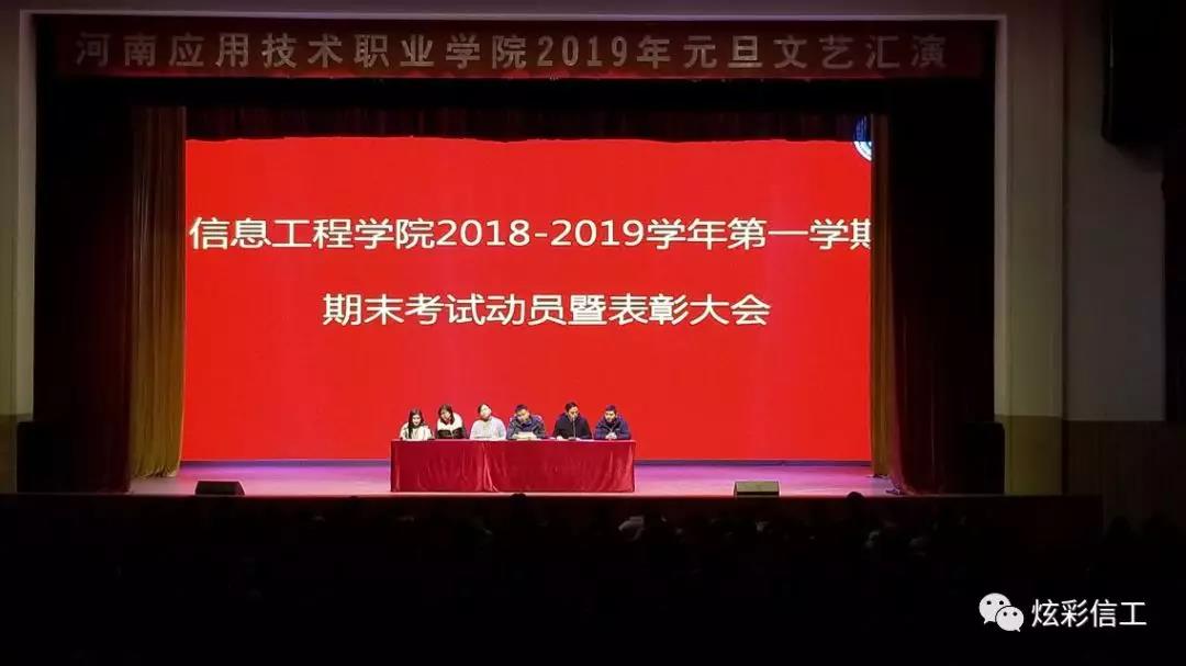 为加强公司学风建设,严肃考风考纪,确保教学质量,营造浓厚的学习氛围,树立典型,表彰先进,太阳成集团tyc33455cc在2019年1月3日下午13:00在公司大礼堂召开了2018-2019学年第一学期期末考试动员暨表彰大会。出席本次大会人员有:太阳成集团tyc33455cc经理王雷老师、副经理崔琳老师、党总支书记杨明杰老师、团总支书记王碧琳老师、计算机办公室主任马丽艳老师和计算机网络教研室主任张振平老师以及太阳成集团tyc33455cc17,18级辅导员老师及太阳成集团tyc33455cc17,18级同学。