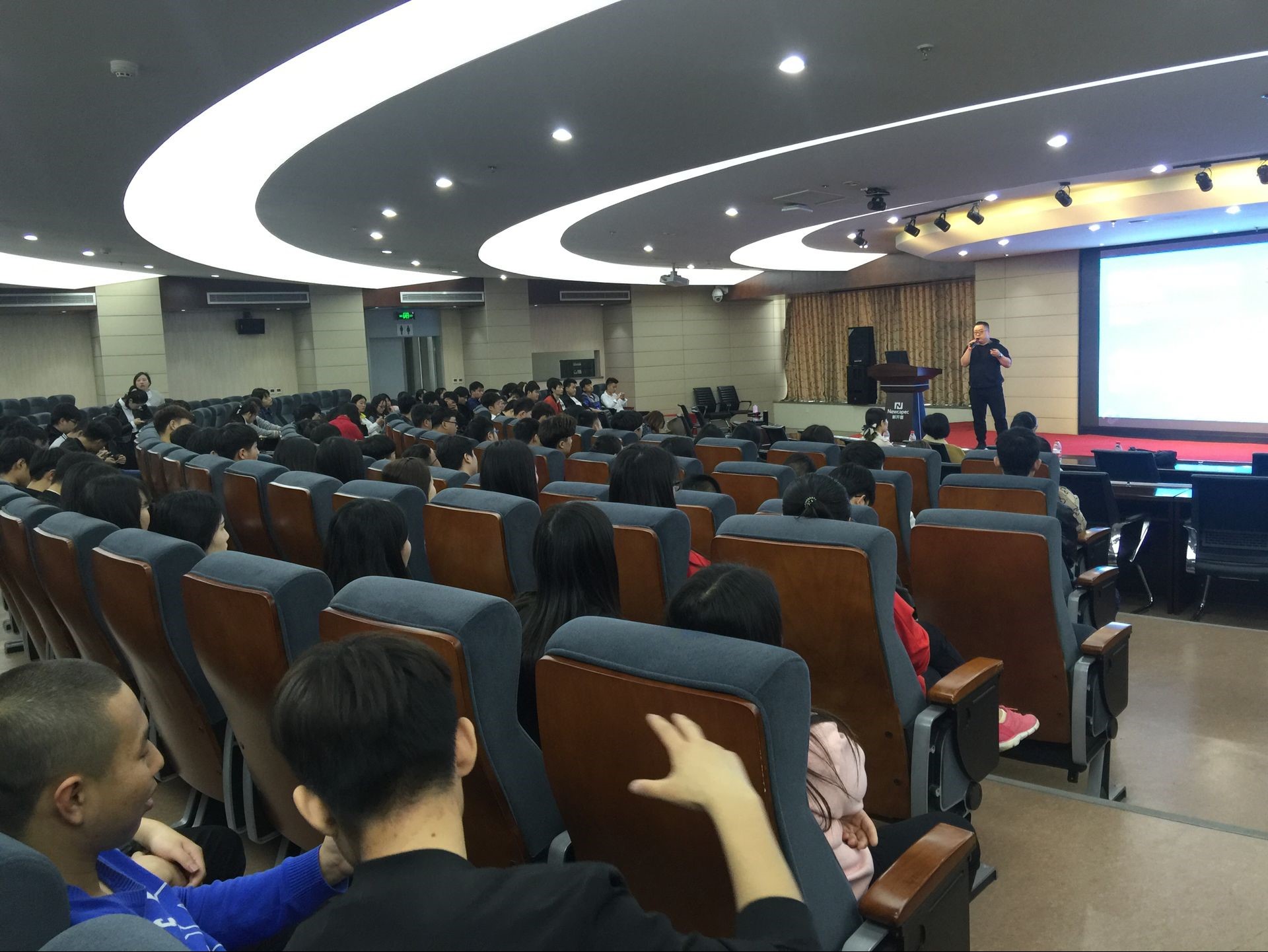 随后所有员工参加了计算机应用技术专业知识讲座。通过王飞老师的激情演讲,员工们对自我掌握知识的梳理,对即将的实习,应聘什么样的岗位有了一定的了解。