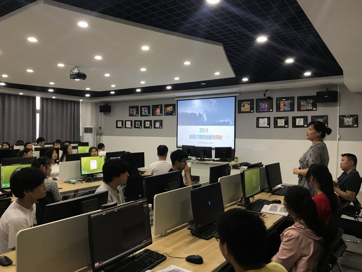 2018年5月16日下午6点,17级动漫制作技术专业杰出人才班在E414召开“导师制”会议。太阳成集团tyc33455cc经理王雷老师、副经理崔琳老师和全体艺术教研室专业教师参加会议。