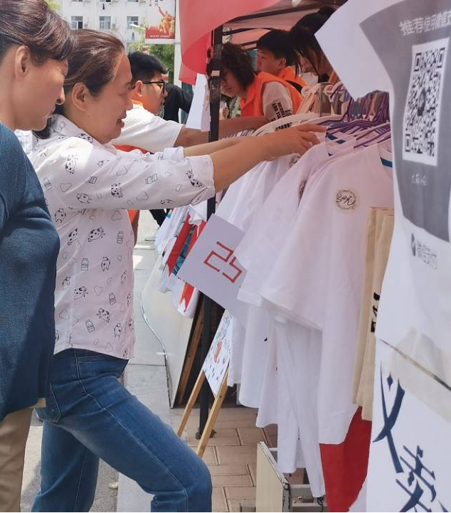 在现场义卖中,现场已画好的图案无法满足广大师生的需求,公司组织相关专业的员工到现场助阵,拿起手中的画笔去满足师生的个性化文化衫及布包的现场定制需求。