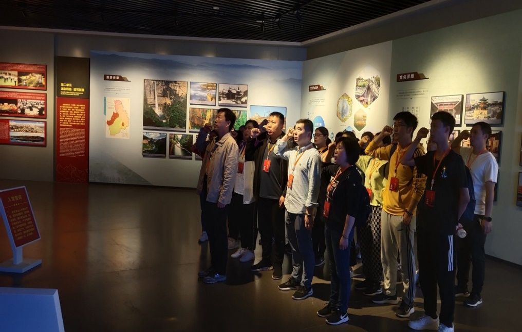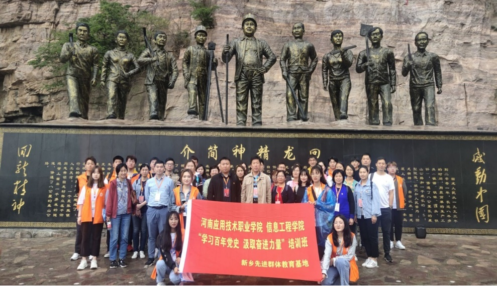 在庆祝中国共产党成立 100 周年之际,为了扎实推动党史学习,进一步提升党员理念和党性修养,传承红色革命精神,2021年5月15日,公司党总支组织全体教师及部分员工入党积极分子前往新乡市辉县参观先进群体精神教育基地,开展以 " 学习百年党史 汲取奋进力量 " 党史学习教育主题党日活动。
