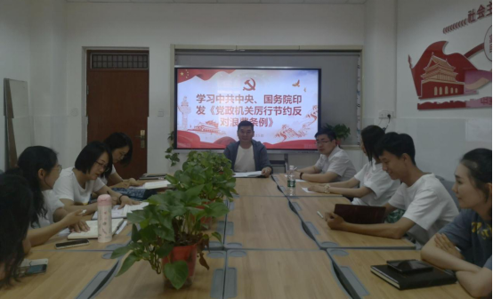 会上,张振平同志传达院领导的意见:一是要把《条例》作为党内一项基础性法规,认识实施《条例》的重大意义,牢固树立节约光荣、浪费可耻的思想观念,增强节约意识,把勤俭节约,反对浪费作为基本理念,落实到日常行为和实际工作中。二是要坚持党员模范带头,率先垂范,为人师表,大力弘扬艰苦奋斗优良传统,牢固树立勤俭节约意识,凡是《条例》禁止的坚决不做,要求别人做到的自己首先做到,从严要求,做出表率。三是要加大在员工中的宣传工作,把勤俭节约反对浪费作为教育工作长期秉持的工作原则和基本理念,真正落实到实际工作中和具体行动上,努力办好人民满意的教育。不断把厉行节约反对浪费工作做细、做实、做深入。