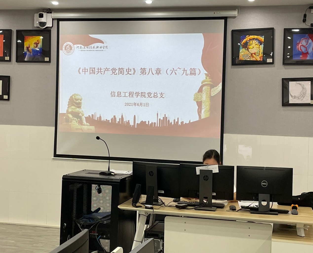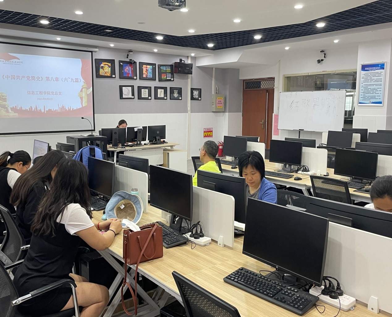 为深入贯彻落实公司政治学习任务,稳步推进公司教职工的党史学习教育,2021年6月1日下午,公司党总支组织全体专兼职教师,辅导员等,分别于西校区E414机房和东校区519机房进行学习活动。西校区会议由公司党总支纪检委员夏丽珍主持,东校区会议由办公室主任常昆主持。
