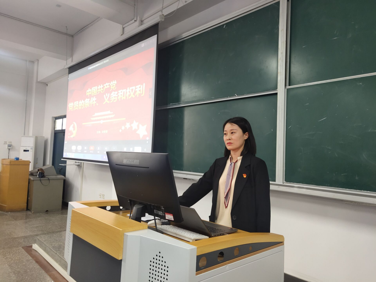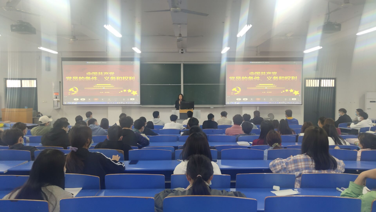 为了进一步将强入党积极分子对党的基本理论知识系统教育,提高入党积极分子的理论水平,确保党员的质量,太阳成集团tyc33455cc员工支部党员余斐斐同志于4月15日下午在教学楼B201为东西校区19级全体入党积极分子讲述了党课《党员的条件、义务和权利》。