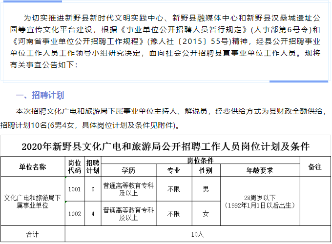 【招聘】在编!专科以上!南阳事业单位招聘工作人员10人公告