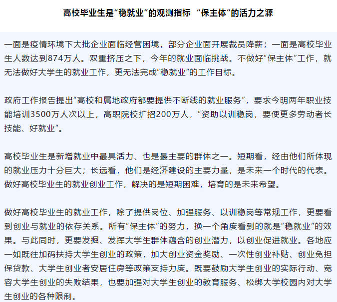 【就业创业指导】高校毕业生是“稳就业”的观测指标 “保主体”的活力之源