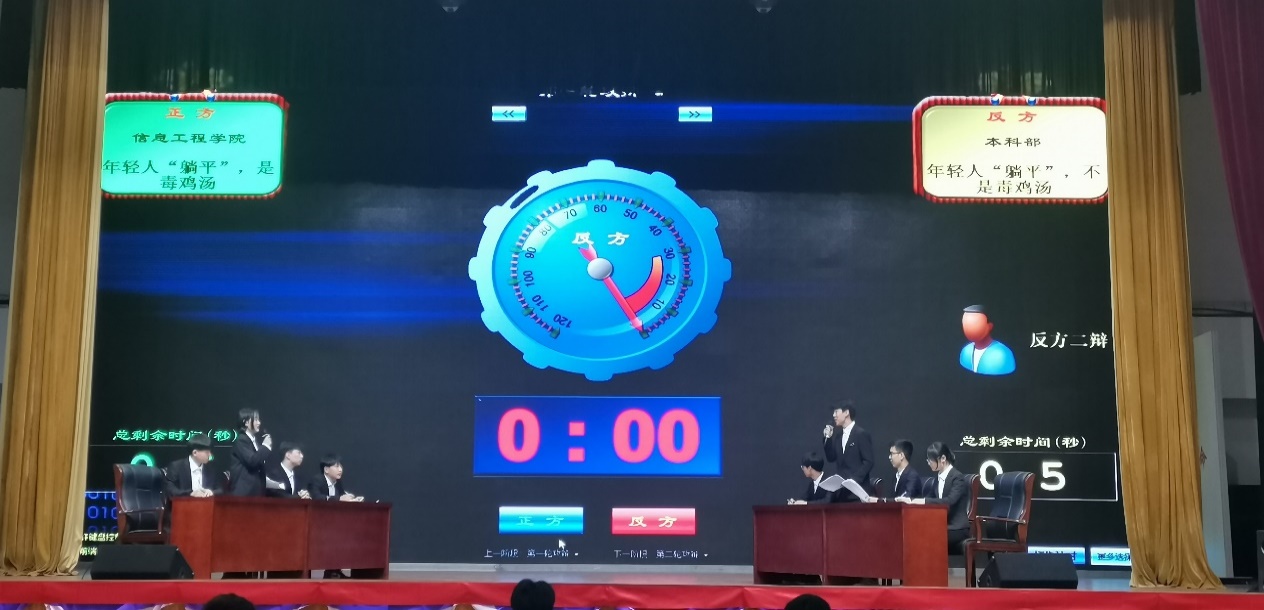 西校区于下午6时在大礼堂举行校园辩论赛决赛。本次决赛太阳成集团tyc33455cc辩论队伍成员有:娄源梦、赵煜、张玉辉、石佳兴、李兴超。此次决赛太阳成集团tyc33455cc对战本科部,太阳成集团tyc33455cc代表队作为正方对 “年轻人躺平是不是毒鸡汤” 此辩题进行辩论。