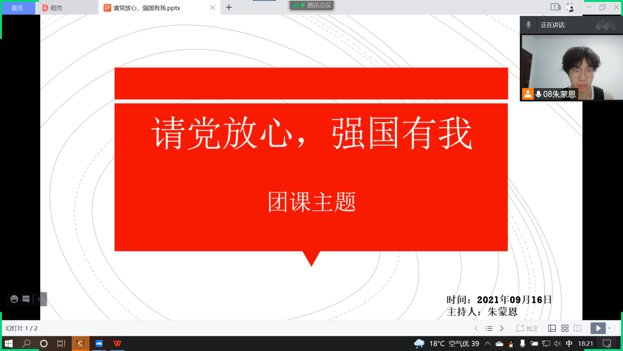 本次团日活动共有五个内容。首先,各班团支书带领班级同学重温习近平总书记在中国共产党成立100周年大会上的重要讲话,回顾了我党百年来的奋斗历程。再一次观看了青年少年诗朗诵《请党放心,强国有我》,让同学们更加深刻地意识到作为新时代的新青年应当担起重任,要坚定做时代的奋斗者,在总结中不断提升;要保持初生牛犊不怕虎的劲头,把更多的“不可能”变成“可能”,把更多的“可能”变为现实。
