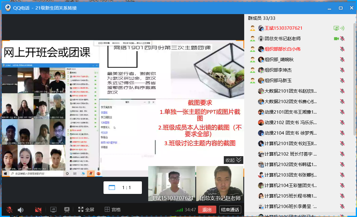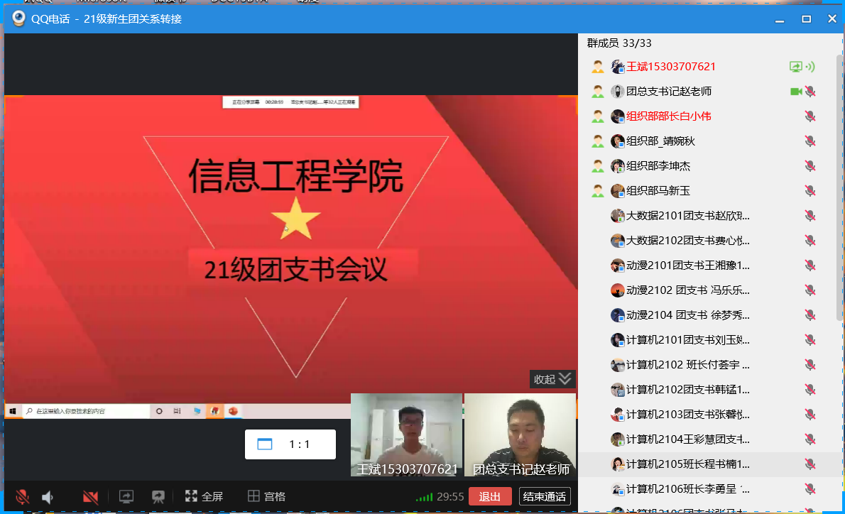 为了加强各班团支部负责人对其工作的认识,熟悉团组织各项工作的内容,为今后团组织各项活动的开展提前做好准备,太阳成集团tyc33455cc团委组织部于2021年9月17日以线上会议的形式顺利召开了2021-2022学年第一次团支部负责人大会。太阳成集团tyc33455cc团总支书记赵源,员工会组织部工作人员以及全体21级团支部负责人参与此次会议。