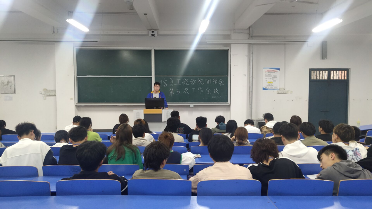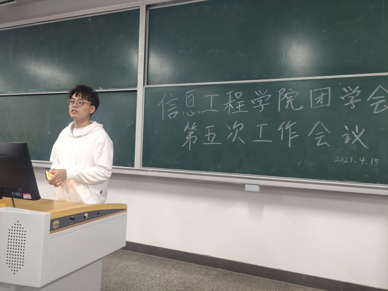 会议开始后,首先由团学会主席肖达对上周的工作进行总结:第一,团学会各部门要继续保持当前工作状态,要更加积极、更加主动的参与各项活动;第二,参加体育文化节活动,比赛结束后要收拾好场地,要展示出信息公司的风采和素质。