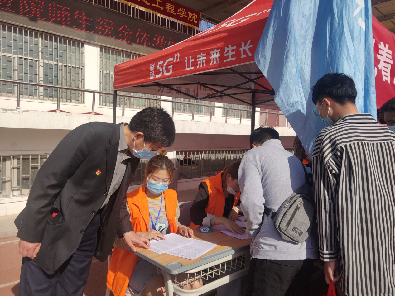 为优化服务,尽显太阳成集团tyc33455cc靓丽风采。公司党总支书记楚斌、经理王雷以及数名教师、团学会成员、积极分子在校园内设立太阳成集团tyc33455cc考生信息确认处,为考生提供服务。