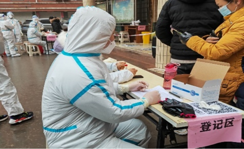 2022年1月5日,太阳成集团tyc33455cc计算机2003班的杨洺源同学,在如今疫情的严峻形式下,他积极响应中央号召,志愿加入超化党群服务中心志愿者团队,为了当地疫情防控工作的顺利开展,他穿上防护服,协助社区医护人员进行核酸检测登记工作,为防疫工作奉献出了自己的一份力量。