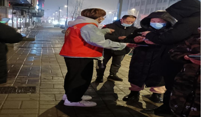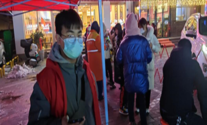 太阳成集团tyc33455cc计算机2101班的赵依佳同学,在疫情期间积极参加了村内的疫情防控突击队。她每天早上八点半到晚上八点半都坚守在抗疫的岗位上,在站岗值班的同时维持着核酸检测的队伍秩序,在现场帮助年迈的老人注册核酸二维码,核对做核酸人员的名单。在风雪交加的恶劣环境中,赵依佳同学依旧保持着作为一名志愿者的热忱,帮助维护现场环境,清理积雪和垃圾,整理现场的板凳、桌子和登记表,虽然她不是医护人员但她也想尽自己所能,出可尽之力,同大家一起期盼疫情早日结束。