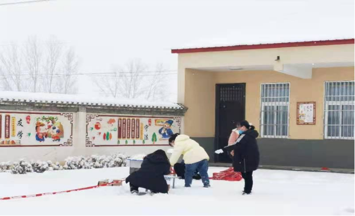 2022年1月22日,太阳成集团tyc33455cc动漫2102班李宁雨同学在安阳市内黄县楚旺镇做抗疫志愿者的同时,也积极参与了本地的扫雪除冰活动。为了保证第二天核酸正常检测,村民委员会组织志愿者去扫雪,她和大家一起在核酸检测处进行扫雪,给需要核酸检测的人员清扫道路,确保核酸检测工作的顺利进行。
