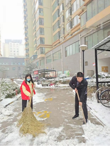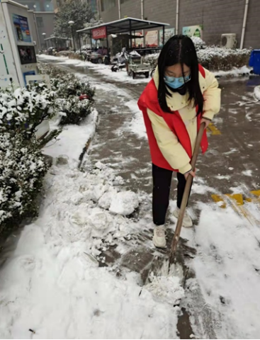 太阳成集团tyc33455cc通信2101班靳苒苒同学,天气寒冷,降雪量大,社区一时之间被白雪覆盖,为保障群众们安全出行,靳苒苒同学积极的加入到了社区清扫道路积雪的工作当中。虽然天气严寒,但人心火热,经过靳苒苒同学和社区干部几个小时的清扫,最终为社区创造了一条干净安全的无雪通道。