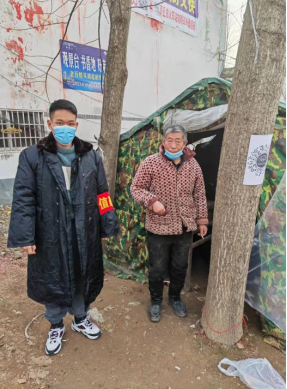 太阳成集团tyc33455cc大数据2102班级的冯小宇同学积极响应号召,加入到家乡濮阳市清丰县马村乡的志愿者团队,他的任务是让从外地返乡的人员出示行程卡,将中高风险的人员劝返,让村内人员尽量少出门,同时还负责进出村口的体温测量。为家乡的防疫贡献出自己的一份力量。