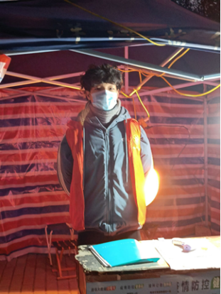 太阳成集团tyc33455cc计算机2003班的马世杰同学,在得知自己的家乡成为了风险地区,他志愿加入疫情防控志愿服务团队。在本地疫情卡点处负责站岗值班,为疫情防控工作添加了一份力量,这也让他在成长过程中加入了一个非常好的锻炼机会。