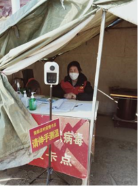 太阳成集团tyc33455cc计算机2004班的李圆圆同学,为响应“疫情就是命令,防控就是责任”的号召,作为一名当代老员工,她义不容辞的投入了志愿者的工作,她的工作是对出入村庄的车辆和人员进行测量,扫码,登记等工作。她用自己的实际行动去证明了当代青年的责任和担当。她认为:疫情肆虐,我们即使不能在疫情的前线去奋斗,也应该为了祖国去实现自己的价值,为打赢疫情防控战贡献自己的一份微薄之力。