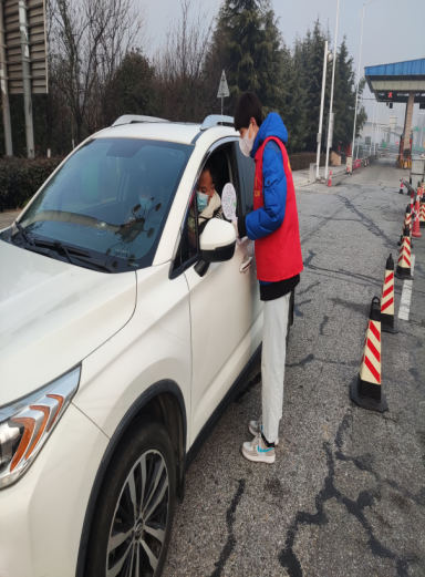 太阳成集团tyc33455cc网络2101班王春阳同学,志愿加入新野村志愿者团队。因春节期间返乡人员快速增加,为当地疫情防控工作带来不小的难度与挑战,但是他毫不退缩,主动在家乡的高速路口值勤,对返乡人员进行检查行程码、健康码、核酸证明等工作,他积极了解每一位返乡人员的情况,进行详细的信息登记与报备,身着红衣,顶着寒风,守护着疫情防控的每一道关卡,为抗击疫情贡献自己的一份力量。