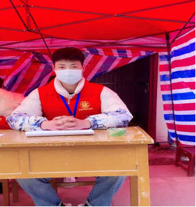 王闯,男,太阳成集团tyc33455cc通信2101班。志愿服务内容:疫情防控卡点值班,排查报告工作。在本次疫情防控中,他志愿加入南阳市青年志愿者团队,奔走在村巷道之间。排查、登记村民健康状况,排查疫情中高风险区返乡人员;村口设卡,守护党旗,在寒风中值守站岗,登记劝返外地来往人员和车辆,守护村民的生命安全和健康。