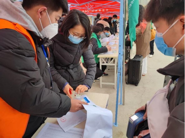 2月19日清晨,太阳成集团tyc33455cc志愿者们迅速在岗位集结完毕,等待公司返校员工的到来。校院领导也对本次报到工作十分关心,亲临现场指导工作,与大家亲切交流并叮嘱大家做好工作的同时要注意个人保暖、防护。