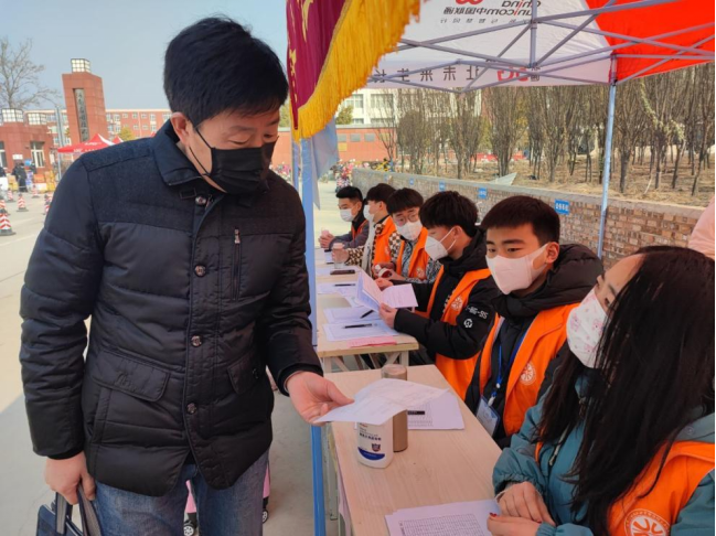 报到现场,到处都是志愿者们忙碌的身影,他们分工明确,第一时间查验报到员工的核酸检测结果证明、行程码、健康码、承诺书、一人一档信息调查表和14天体温监测表,在所有纸质文件确认无误后,盖上通行公章后,引导有序进入校园,现场的严格把控,志愿者们的热情迎接及细心引导,切实做好了员工返校工作的第一道“防线”。