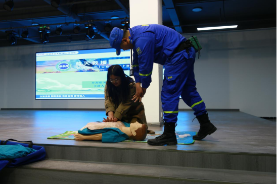 本次活动采用“理论讲解+现场演示+实践培训”的形式,为员工讲授应急安全急救知识技能。讲座主要围绕海姆利克急救法和心肺复苏详细展开了讲解,主讲老师邀请现场员工进行演示“海姆立克”急救法的具体实施操作细节,接着利用仿真人讲解了心肺复苏的现场操作过程,包括确认四周施救环境,判断伤者意识状态,确认伤者呼吸心跳,检查口腔是否有异物、打开气道方式,人工呼吸操作及胸外心脏按压的正确做法。同学们在讲座过程中,跟着现场学习,切身感受,熟悉急救步骤和要领,极大的提升了同学们的应急处理能力。