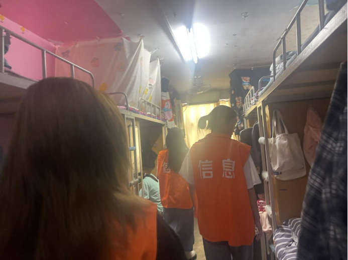 我们向各个宿舍楼老师签到后,开始对每层楼进行安全排查以及卫生记录。检查的内容除了宿舍整体卫生状况,个人卫生情况之外,还包括电源使用情况等。此次重点对信工宿舍卫生状况进行检查,着重检查了垃圾桶、物品摆放等地方,并就宿舍安全问题给出温馨建议,同时指出打扫时要注意细节问题。检查结果显示,大部分的宿舍干净整洁,但有个别宿舍做得不够好,出现打扫不干净,东西乱摆放,甚至发现有吹风机等违禁物品的问题,急需改善。对这次检查反映的问题,应加以整顿,督促员工营造温馨整洁的住宿环境。对此,我们对其进行了提醒以及拍照上报等措施,督促同学们积极改正。